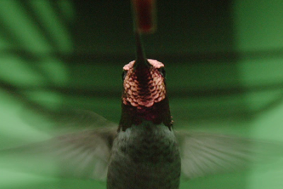 “We took advantage of hummingbirds’ attraction to sugar water to set up a perch on one side of the tunnel and a feeder on the other, and they flew back and forth all day,” said Douglas Altshuler, associate professor in the department of zoology. “This allowed us to test many different visual stimuli.”