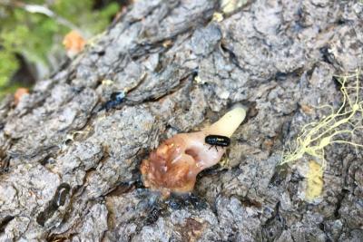 She found that both male and female mountain pine beetles accumulate trans-verbenol during their development in the brood tree, but only the adult females retained it until they emerged and dispersed in search of new host trees.
