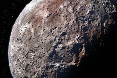 Also, because of Pluto’s long, elliptical orbit, the gases cool down when it goes further away from the Sun so it’s quite possible that during this circuit the atmosphere completely freezes up. We do expect the surface of Pluto to be quite young because of these possible atmospheric processes, and because we can see a lot of light and dark patterns which is likely ice. Of course, this far from the Sun, we have to use the word “ice” cautiously. We’re used to water ice, but on Pluto it could be nitrogen ice or methane ice because the temperature could be only forty degrees above absolute zero.