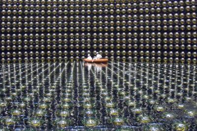 In the T2K experiment in Japan, a beam of muon neutrinos is produced in the Japan Proton Accelerator Research Complex, called J-PARC, located in Tokai, Ibaraki prefecture, on Japan’s east coast. The neutrino beam is monitored by a “near” detector complex (much of which was built in Canada) 280 meters away, and aimed at the gigantic Super-Kamiokande underground “far” detector in Kamioka, near the west coast of Japan, 295 km (185 miles) away. An analysis of data from Super-Kamiokande associated with the neutrinos from J-PARC reveals that there are more electron neutrinos (a total of 28 events) than would be expected (4.6 events) without this new process.