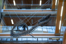 The cast skeleton of an ancient marine reptile—with a neck so long and heavy it would have barely been able raise its head above water—has taken up residence at UBC's Pacific Museum of Earth (PME). The 13-metre-long, resin-cast Elasmosaurus skeleton was installed in the glass atrium… read more